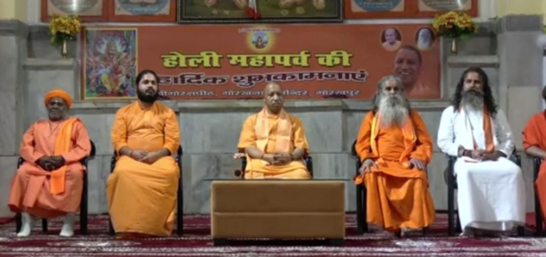 होलिका भस्म की पूजा कर सीएम योगी ने मनाई होली संतो ने एक दूसरे को लगाया भस्म का तिलक