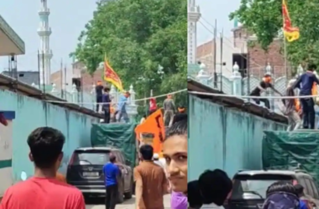 तुगलकाबाद में शोभायात्रा के दौरान मस्जिद पर चढ़े युवक, झंडा लहराने से बढ़ा तनाव; पुलिस ने संभाला मोर्चा