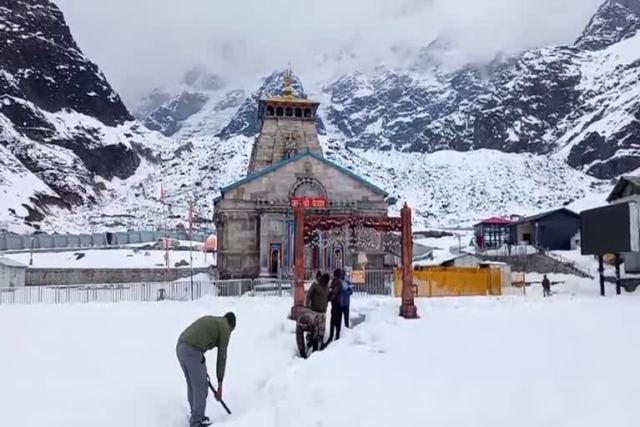 बर्फ से ढका केदारनाथ धाम, यात्रा शुरू होने से पहले प्रशासन की तेज तैयारियां