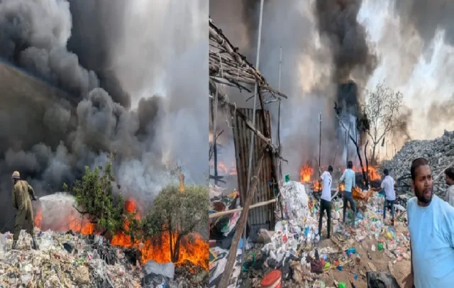 गाजियाबाद के इंदिरापुरम क्षेत्र में गुरुवार दोपहर एक भीषण आग लगने से हड़कंप मच गया। कनवानी गांव के पास झुग्गी बस्ती में लगी इस आग ने देखते ही देखते विकराल रूप ले लिया और 150 से ज्यादा झुग्गियां जलकर खाक हो गईं। इस हादसे में सैकड़ों लोग बेघर हो गए और पूरे इलाके में अफरा-तफरी का माहौल बन गया। प्रारंभिक जानकारी के अनुसार, आग की शुरुआत हाईटेंशन बिजली तारों से निकली चिंगारी के कारण हुई। जिस स्थान पर आग लगी, वहां कबाड़ के निस्तारण और रीसाइक्लिंग का काम होता है, जिससे आग तेजी से फैल गई और आसपास की झुग्गियों को अपनी चपेट में ले लिया। आग इतनी भयावह थी कि आसमान में दूर तक काला धुआं दिखाई दिया और इसकी तपिश आसपास के इलाकों में भी महसूस की गई। लोग अपनी जान बचाने के लिए इधर-उधर भागते नजर आए। कई लोग अपने बच्चों को बचाते दिखे, तो कुछ अपने घर का सामान समेटने की कोशिश करते रहे।